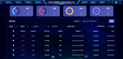 平臺的首頁展示包含監(jiān)測設(shè)備的總數(shù)、故障數(shù)統(tǒng)計、設(shè)備在線數(shù)統(tǒng)計、報警曲線圖、報警時段統(tǒng)計、最新報警信息等。